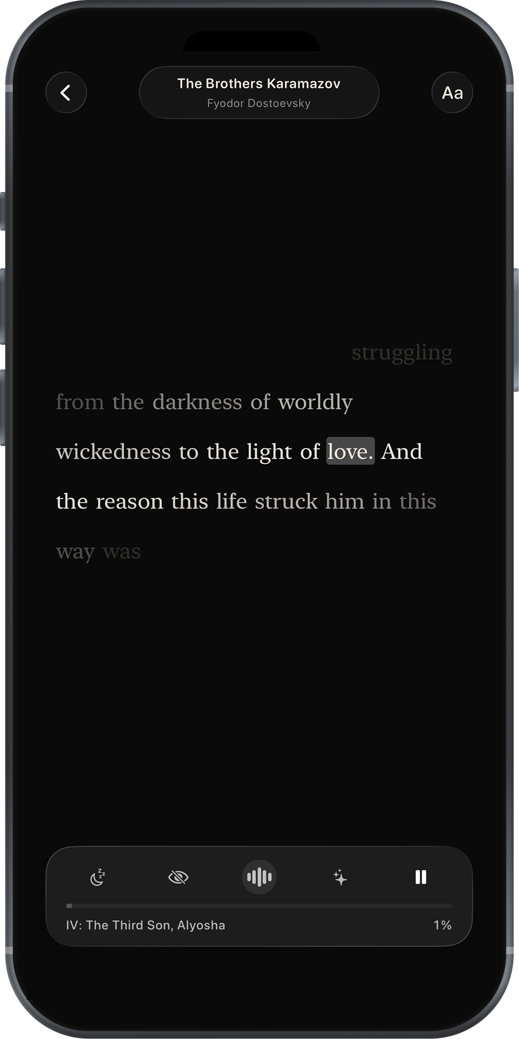 Read it, listen to it, or do both at once. Every book on Morph works all three ways — switch whenever you want.